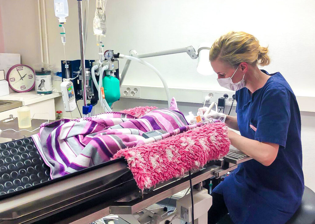 Usein lemmikille laitetaan tutkimusta varten varotoimenpiteenä kuonokoppa, ja joskus eläin rauhoitetaan toimenpiteen ajaksi. Kerromme esitietojen ja yleistutkimuksen perusteella tehdyn hoitosuunnitelman ja vaihtoehdot sen toteuttamiseksi.